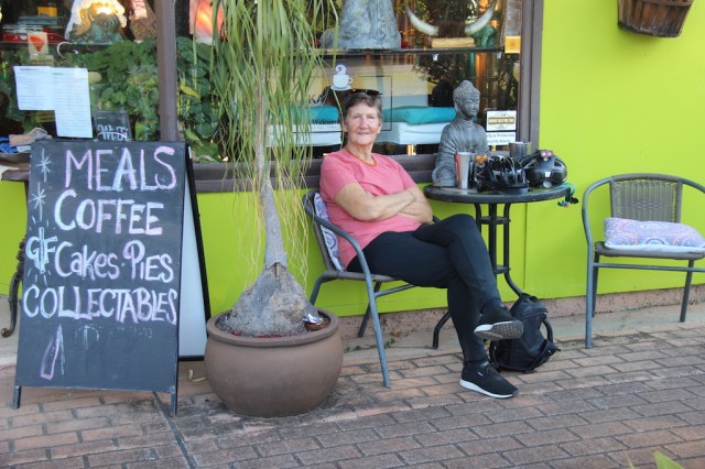 Opposite the park at Moore was the Kai Lounge and the owner Kara was most accommodating as she allowed me to charge our bike batteries at no cost. The café was what would be called in modern day language ‘cool’. The cafe had an alternative theme to it, with many books on Buddhism, alternative lifestyle living and health. Breakfast at the café was of an organic nature and suited us fine.