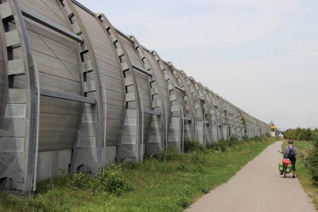 The bike path went alongside a motorway but we heard very little traffic noise as there was an enormous sound barrier deflecting traffic noise.