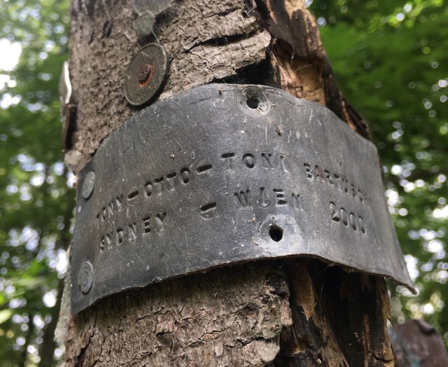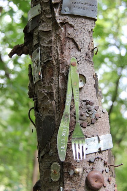 The knife and fork, bottle tops, and other paraphernalia were modern additions but the nails would have been of more ancient origins. Interestingly, at the top of the photograph there was a stamped plaque, shown in the next image. I wonder who they were, especially in light of Sydney being mentioned.