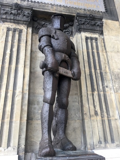 Bev and I went off in search of a nail man and found the statue of a medieval knight covered with nails next to the Vienna City Hall. It was erected in 1915 to raise funds for the widows and orphans of fallen soldiers. Donors were allowed to drive a nail into the wooden figure. The following images show the nail man we found.
