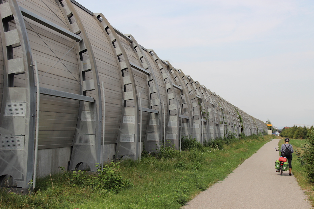 A massive sound deflector between the motorway and the cycle path.