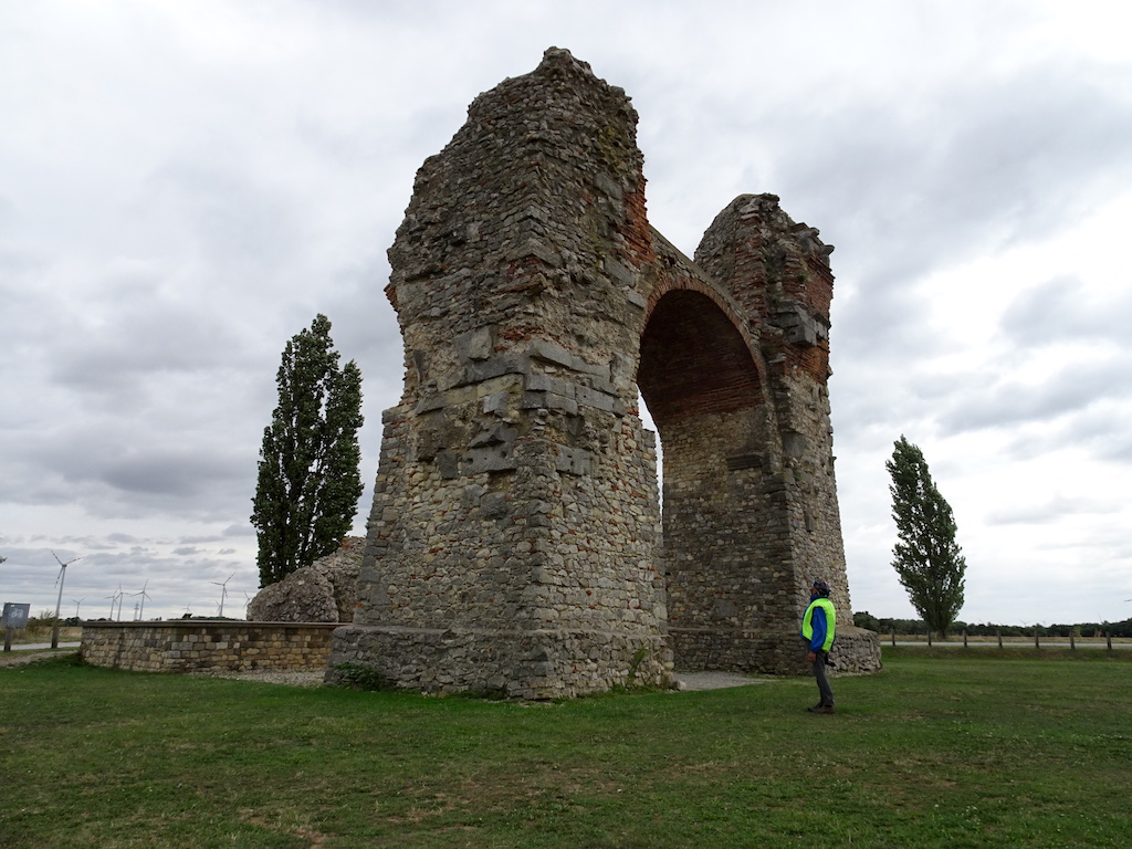 The entrance to the Heidentor. The angle of the poplar trees indicates the ferocity of the wind.