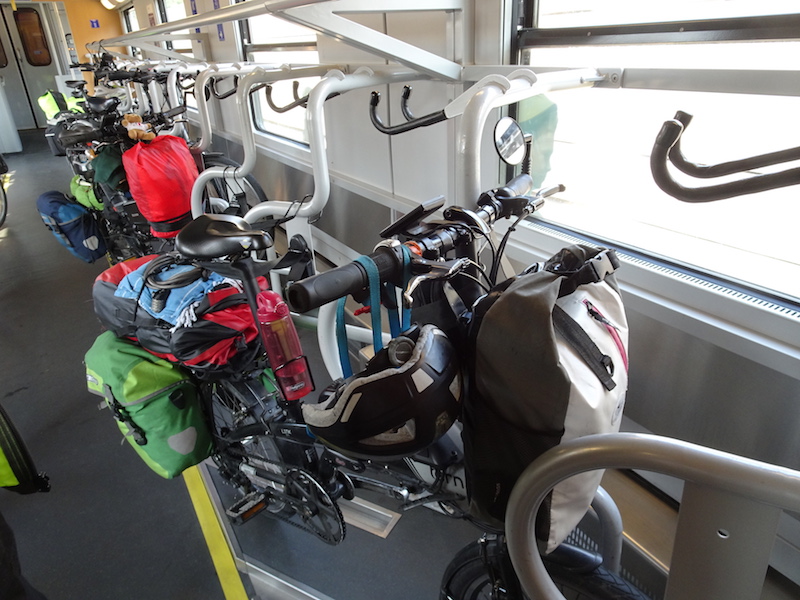 A shining example of how railway authorities should cater for bikepackers. It is possible to hang the bikes vertical but with panniers the bike can remain horizontal.