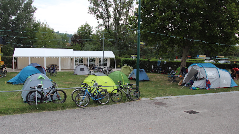 The marquee in the background was erected especially for bikepackers such as us.