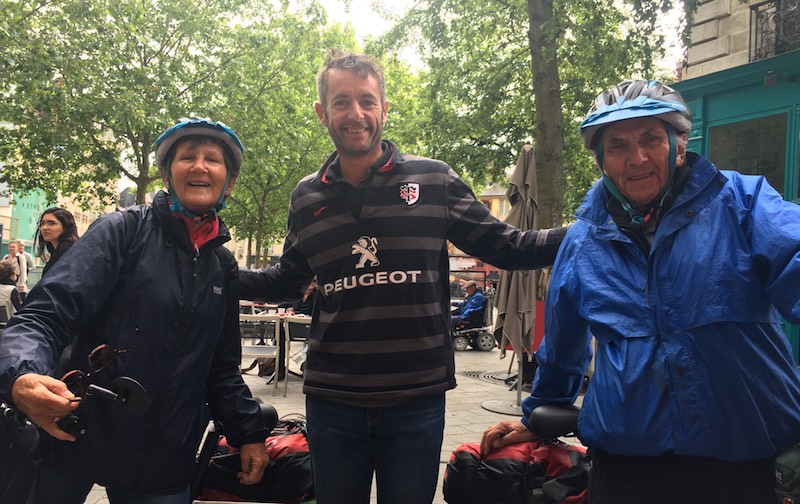 The Peugeot man Jean-Christophe of Rennes biding us farewell and safe travels. Bev has caught the smile.