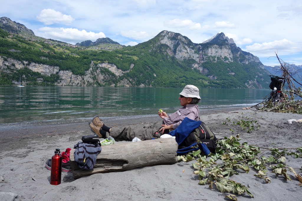 Taking lunch on the River Rhine near the noisy campsite.