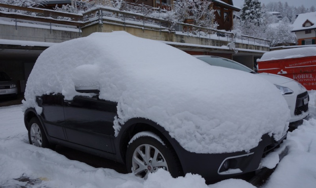Our hire car in Switzerland 2012. Travelling in Europe mid winter has more advantages than disadvantages and they include lower accommodation costs and fewer tourists.