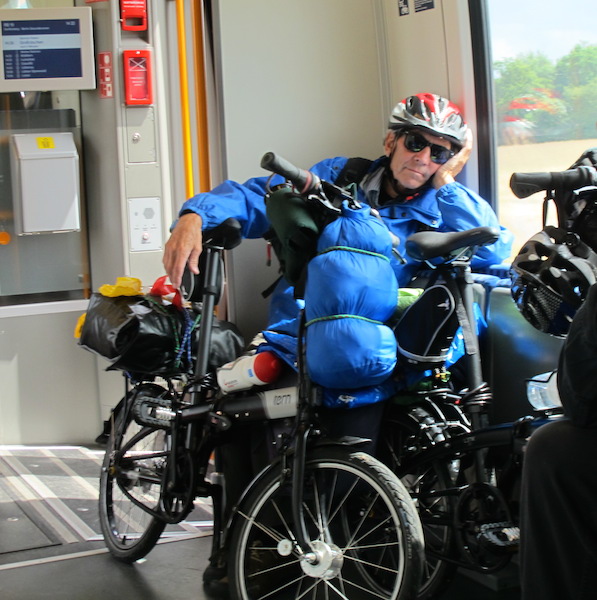 Taking rest on board a train that caters for bikes.