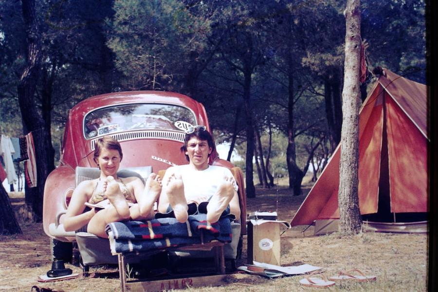 Bev and I in our romantic youth at the Torre de la Pena camping area Spain 1972.
