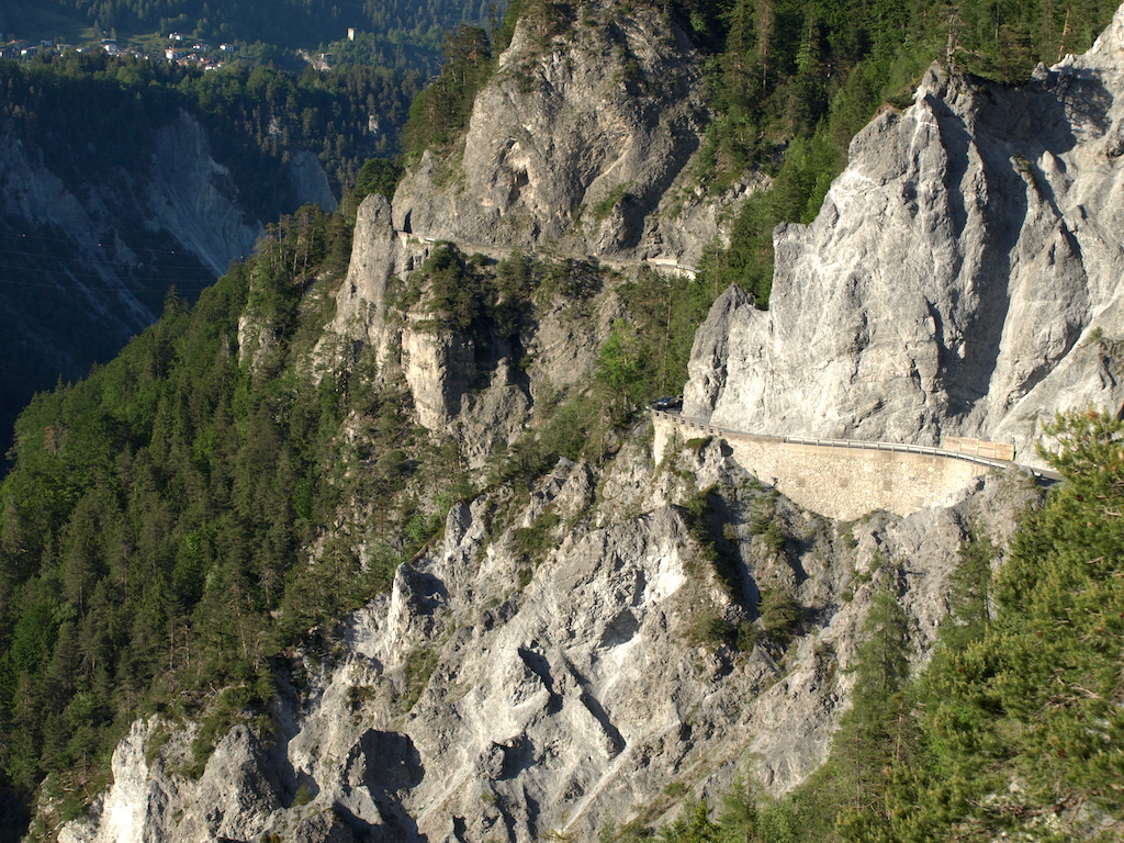 Road through a gorge near the upper reaches of the River Rhine Switzerland.