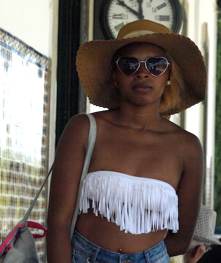 Attractive girl in love heart sunglasses Faro Spain. Archives June 2015 Portugal: Faro.